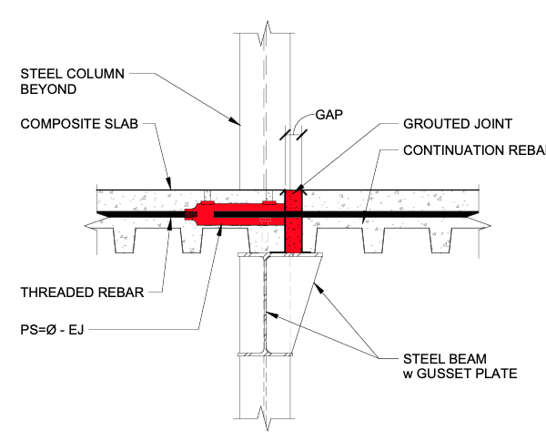 By implementing PS=Ø for Expansion Joints, that complex detail was replaced with a simpler, more efficient solution. Our patented system allowed for natural movement without the need for traditional expansion joints or large leave-outs—streamlining both design and construction.